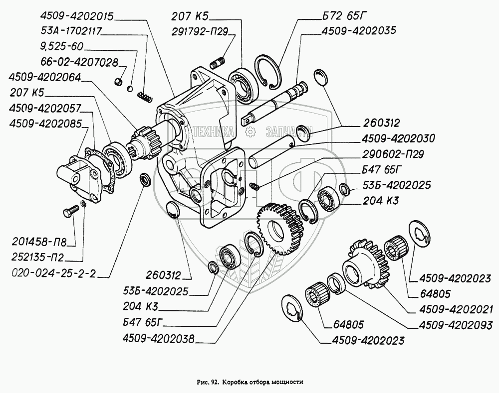 Каталог запасных частей к технике: ГАЗ-4301. Коробка отбора мощности