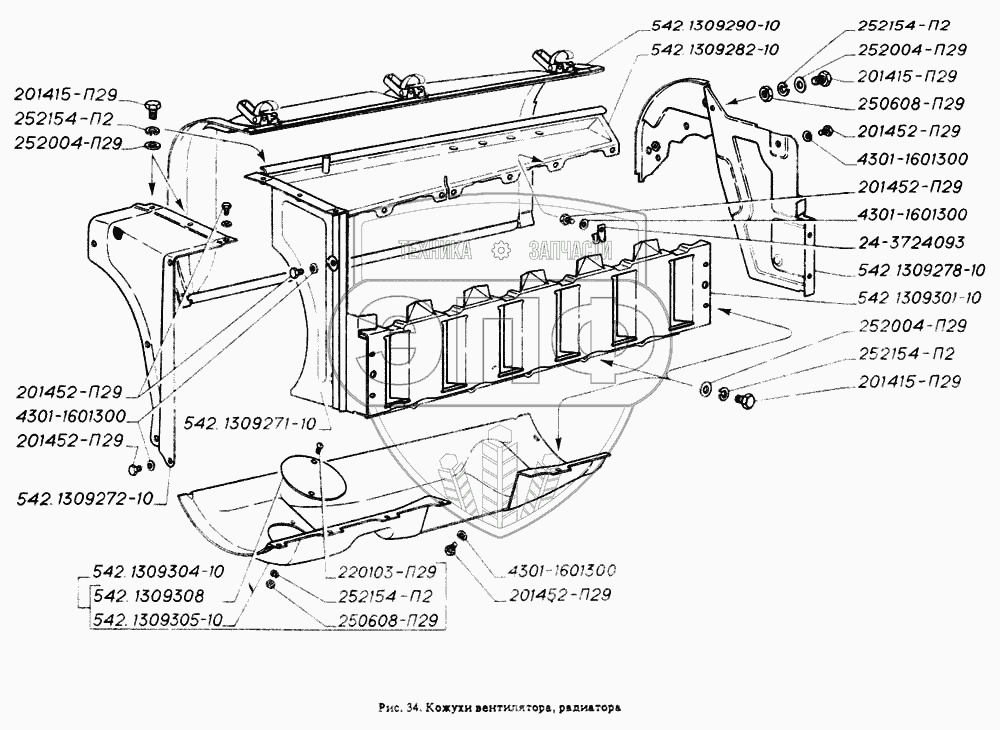 Каталог запасных частей к технике: ГАЗ-4301. Кожухи вентилятора, радиатора