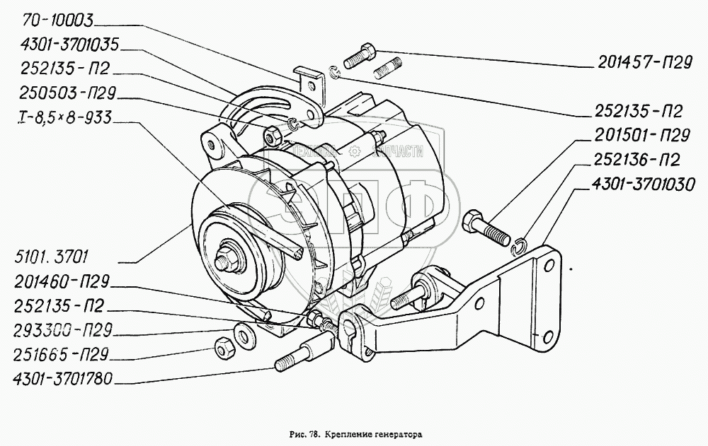 Каталог запасных частей к технике: ГАЗ-4301. Крепление генератора