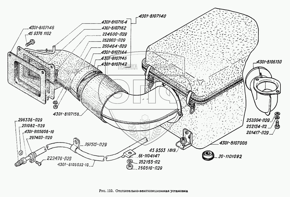 Каталог запасных частей к технике: ГАЗ-4301. Отопительно-вентиляционная система