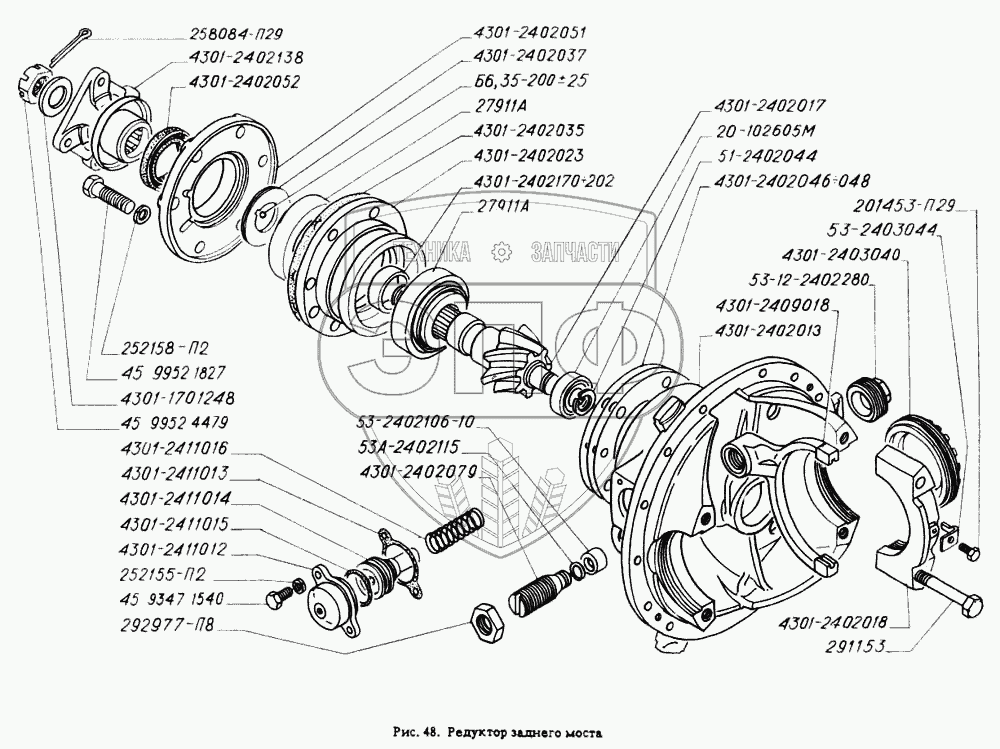 Каталог запасных частей к технике: ГАЗ-4301. Редуктор заднего моста