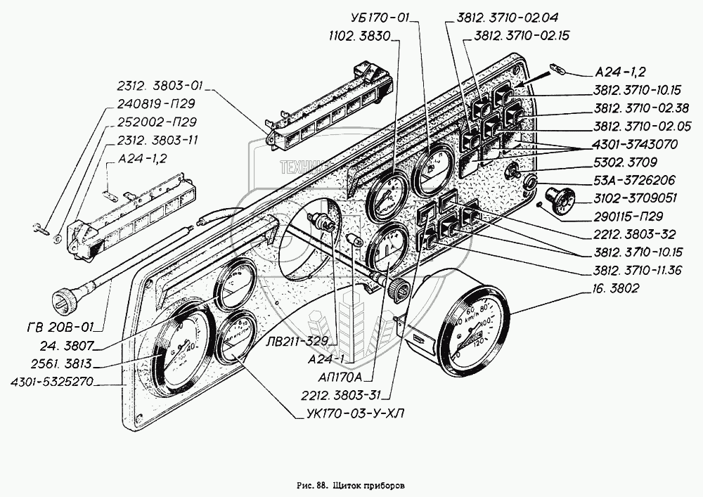 Каталог запасных частей к технике: ГАЗ-4301. Щиток приборов