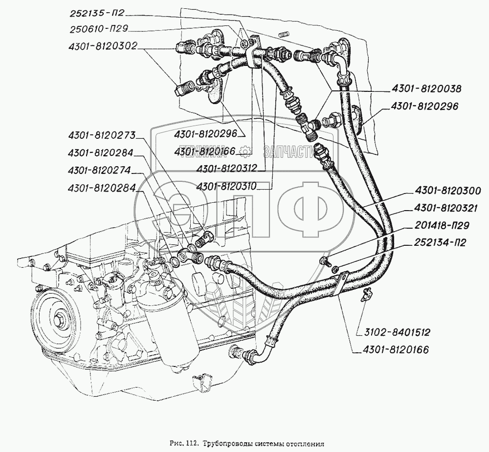 Каталог запасных частей к технике: ГАЗ-4301. Трубопроводы системы отопления