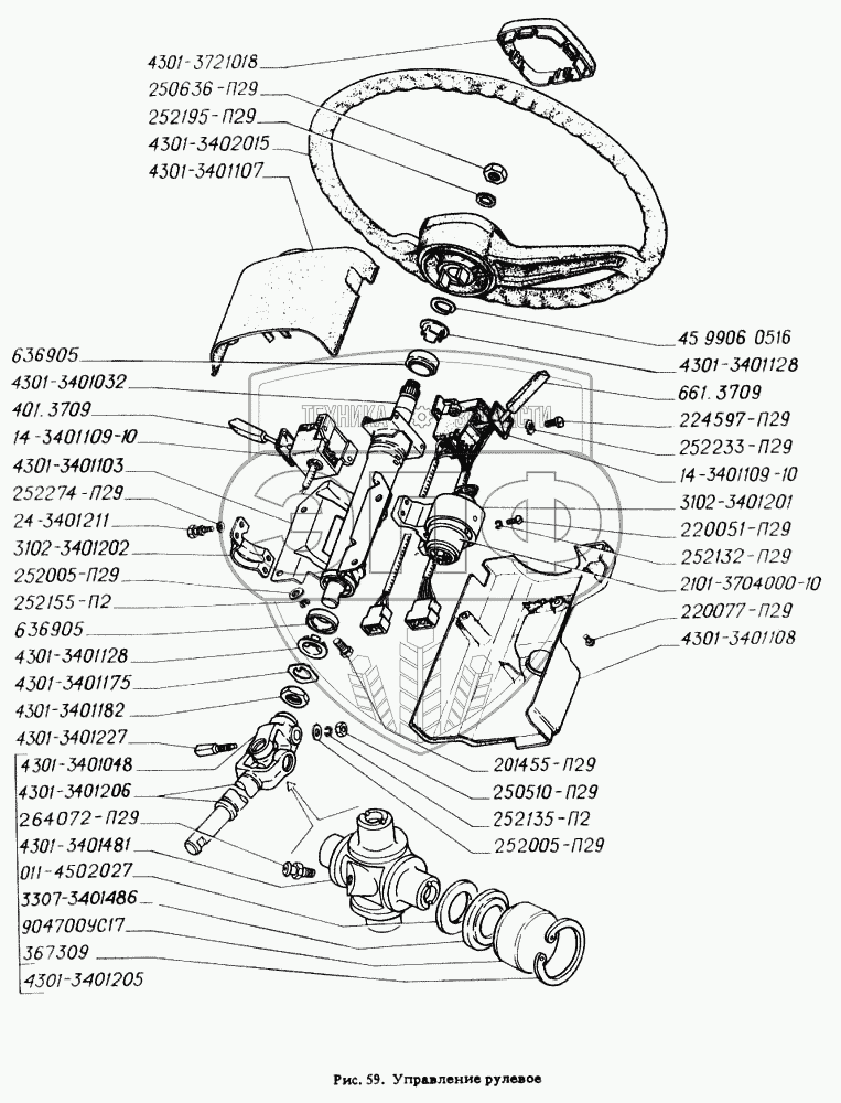Каталог запасных частей к технике: ГАЗ-4301. Управление рулевое