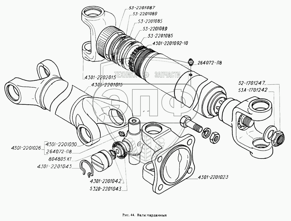 Каталог запасных частей к технике: ГАЗ-4301. Валы карданные