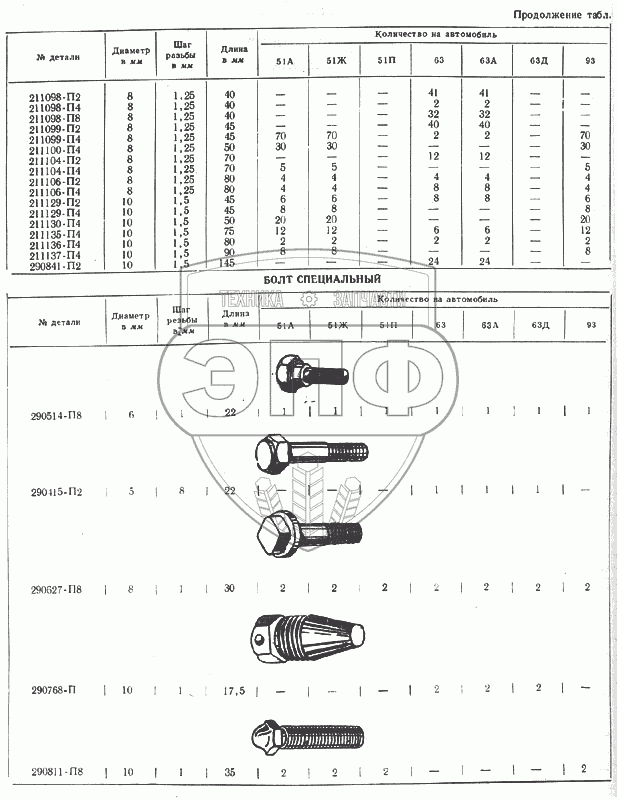 Каталог запасных частей к технике: ГАЗ-51 (63, 93). Болты