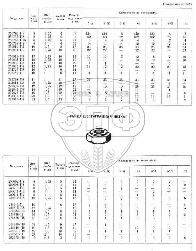 Каталог запасных частей к технике: ГАЗ-51 (63, 93). Гайки