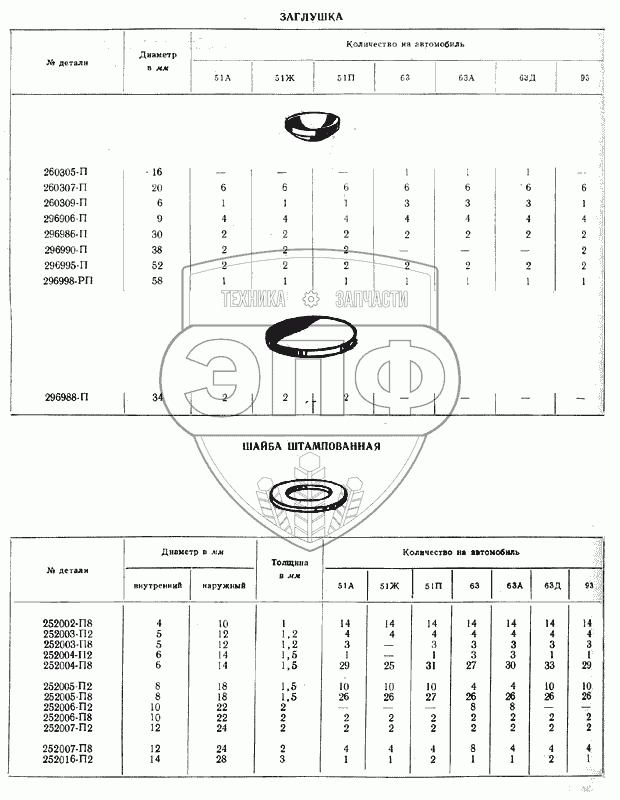 Каталог запасных частей к технике: ГАЗ-51 (63, 93). Заглушки, шайбы