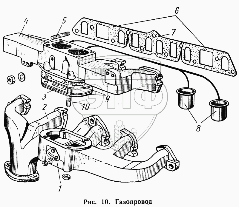 | 9 | 12-1008019-Б | Прокладка между впускной трубой и выпускным коллектором | Нет на складе | |