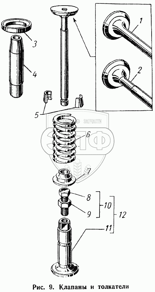 Каталог запасных частей к технике: ГАЗ-52-01. Клапаны и толкатели