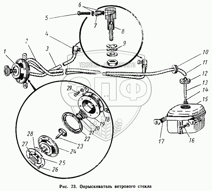 Каталог запасных частей к технике: ГАЗ-52-01. Опрыскиватель ветрового стекла