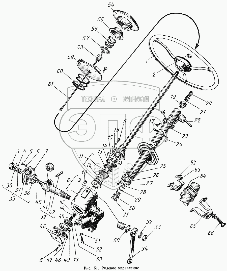 Каталог запасных частей к технике: ГАЗ-52-01. Управление рулевое