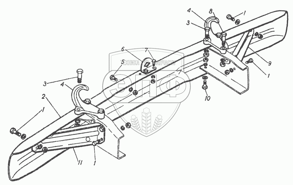 Каталог запасных частей к технике: ГАЗ-5312. Передний бампер и буксировочные крюки