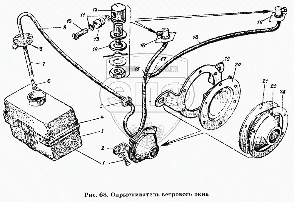 Каталог запасных частей к технике: ГАЗ-53 А. Опрыскиватель ветрового стекла