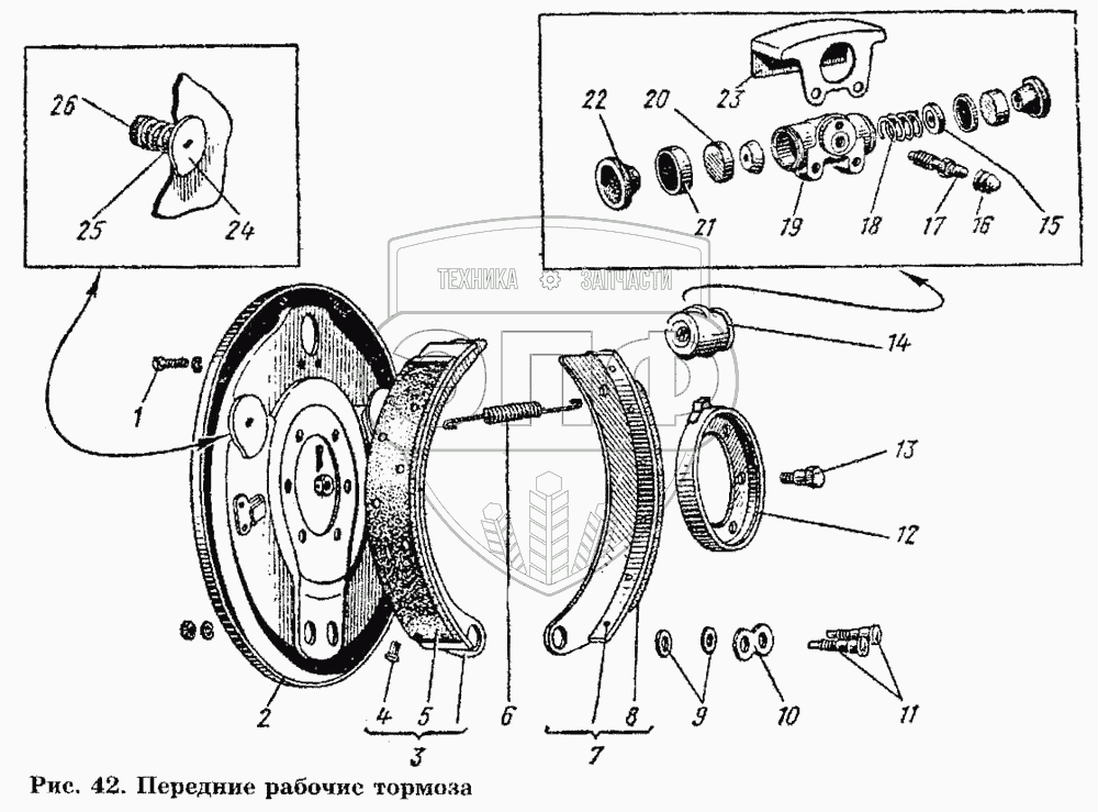 Каталог запасных частей к технике: ГАЗ-53 А. Передние рабочие тормоза