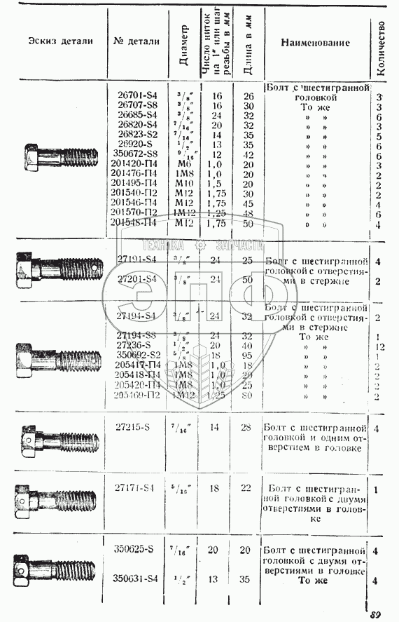 Каталог запасных частей к технике: ГАЗ-ММ "Полуторка". Болты