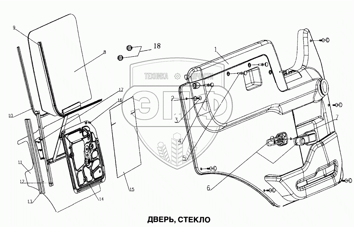 Каталог запасных частей к технике: HOWO Howo. Дверь, стекло