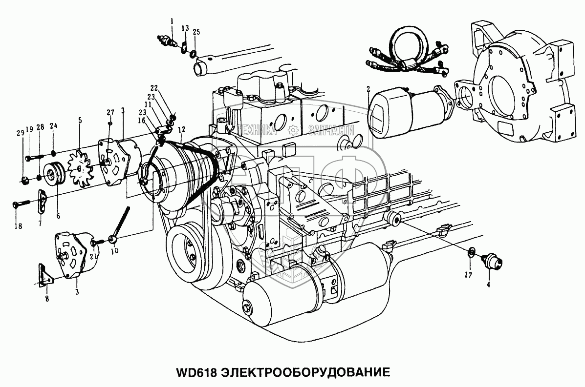Каталог запасных частей к технике: HOWO Howo. Электрооборудование двигателя WD618