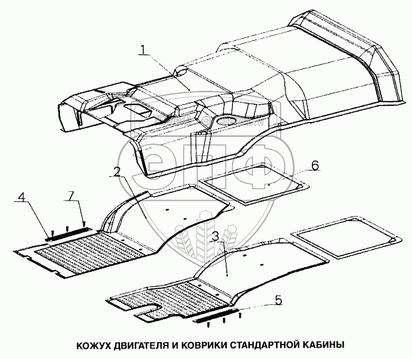 Каталог запасных частей к технике: HOWO Howo. Кожух двигателя и коврики стандартной кабины