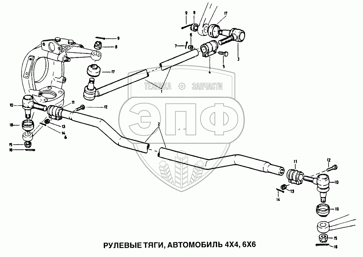 Каталог запасных частей к технике: HOWO Howo. Рулевые тяги, автомобиль 4x4, 6x6