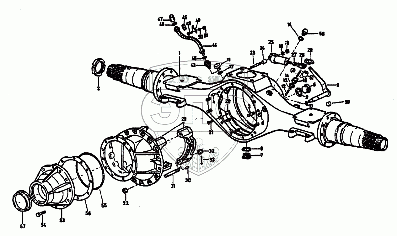 Каталог запасных частей к технике: HOWO Howo cnhtc-huaxin. Картер задного моста