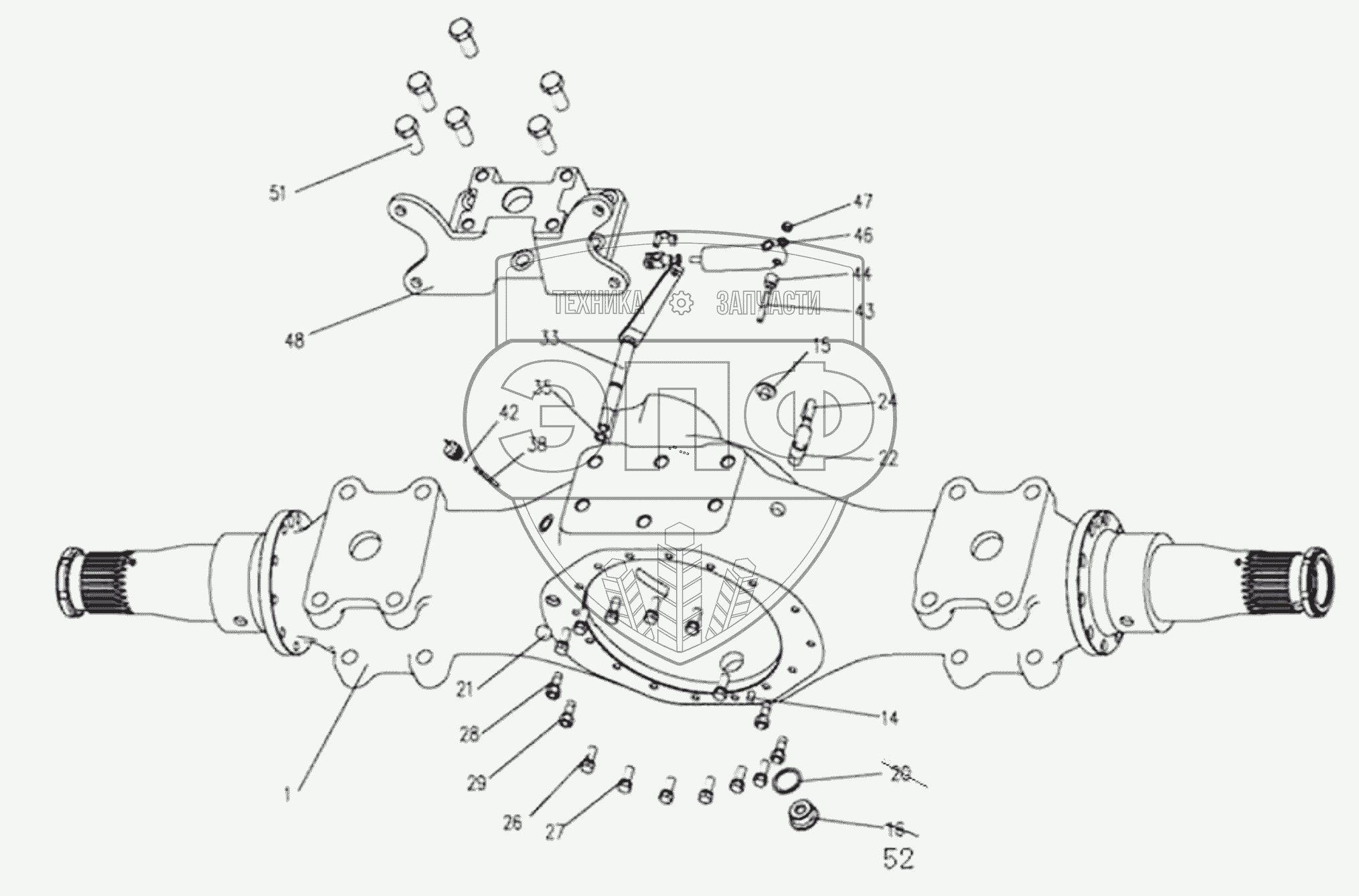 Каталог запасных частей к технике: HOWO ZZ3327N3647C-N2WA. 1st Rear Axle Housing