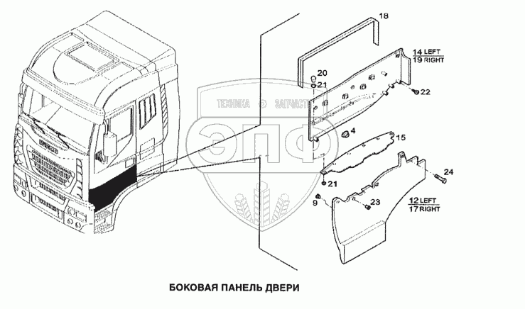 Каталог запасных частей к технике: IVECO Stralis. Боковая панель двери