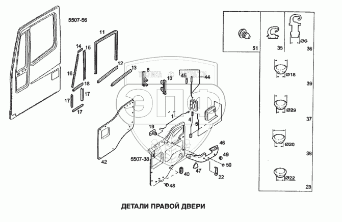 Каталог запасных частей к технике: IVECO Stralis. Деталь правой двери