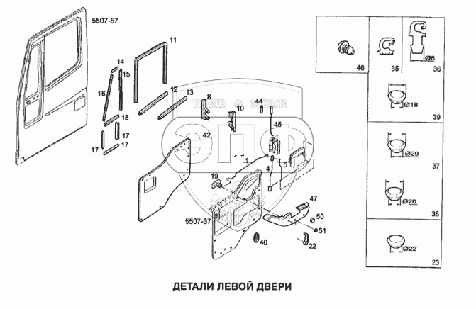 Каталог запасных частей к технике: IVECO Stralis. Детали левой двери