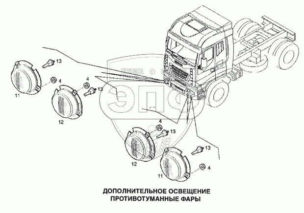 Каталог запасных частей к технике: IVECO Stralis. Дополнительное освещение, противотуманные фары