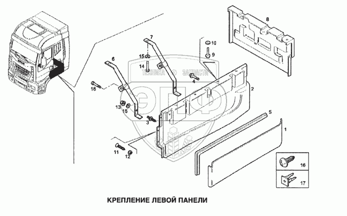 Каталог запасных частей к технике: IVECO Stralis. Крепление левой панели