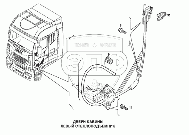 Каталог запасных частей к технике: IVECO Stralis. Стеклоподъемник левой двери