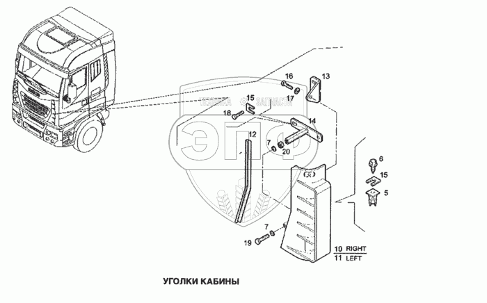 Каталог запасных частей к технике: IVECO Stralis. Уголки кабины