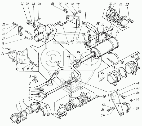 Каталог запасных частей к технике: Камский автозавод 43101. Глушитель выхлопа