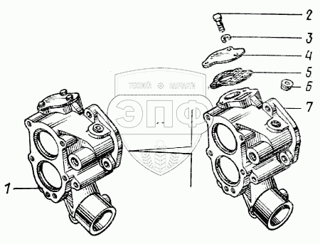 Каталог запасных частей к технике: Камский автозавод 43101. Коробка водяная 740.1303178
