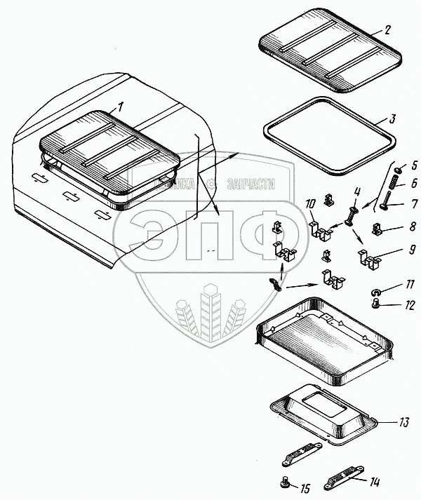 Каталог запасных частей к технике: Камский автозавод 43101. Люки крыши