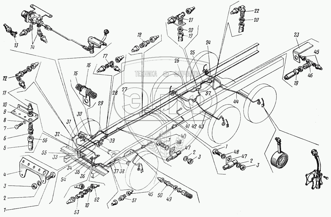 Каталог запасных частей к технике: Камский автозавод 43101. Трубопроводы системы накачивания шин