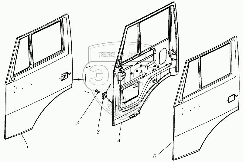 Каталог запасных частей к технике: Камский автозавод 4310. Дверь левая (сварка)