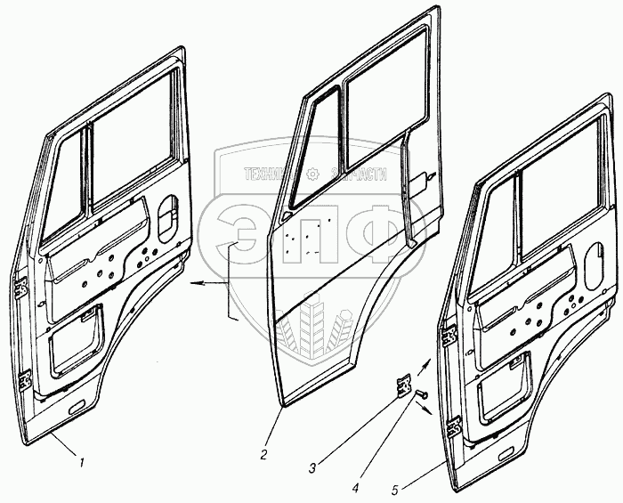 Каталог запасных частей к технике: Камский автозавод 4310. Дверь правая (сварка)