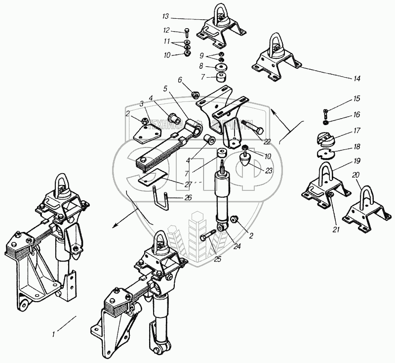 Каталог запасных частей к технике: Камский автозавод 4310. Подвеска задняя кабины
