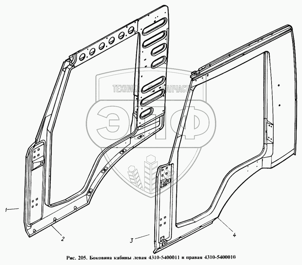 Каталог запасных частей к технике: Камский автозавод 4310. Боковина кабины левая и правая