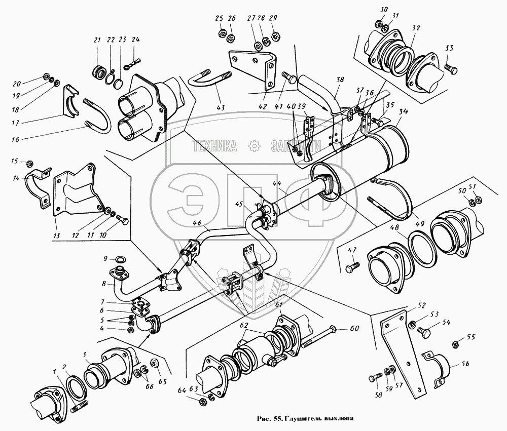 Каталог запасных частей к технике: Камский автозавод 4310. Глушитель выхлопа