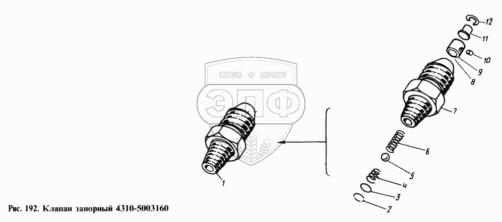 Каталог запасных частей к технике: Камский автозавод 4310. Клапан запорный