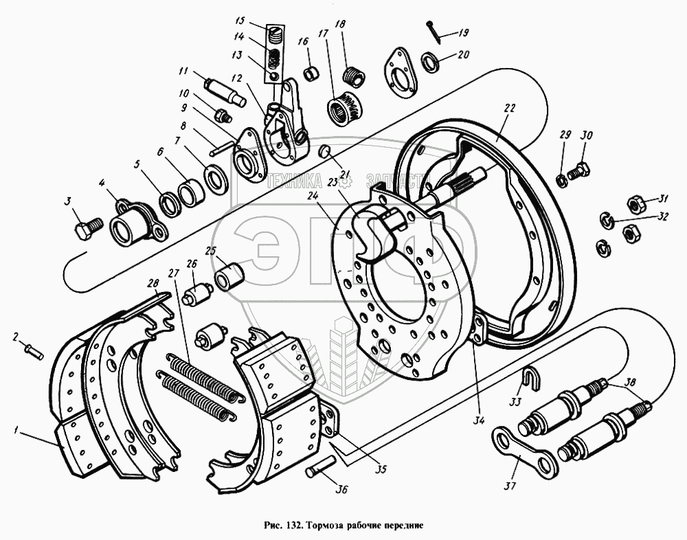 Каталог запасных частей к технике: Камский автозавод 4310. Тормоза рабочие передние