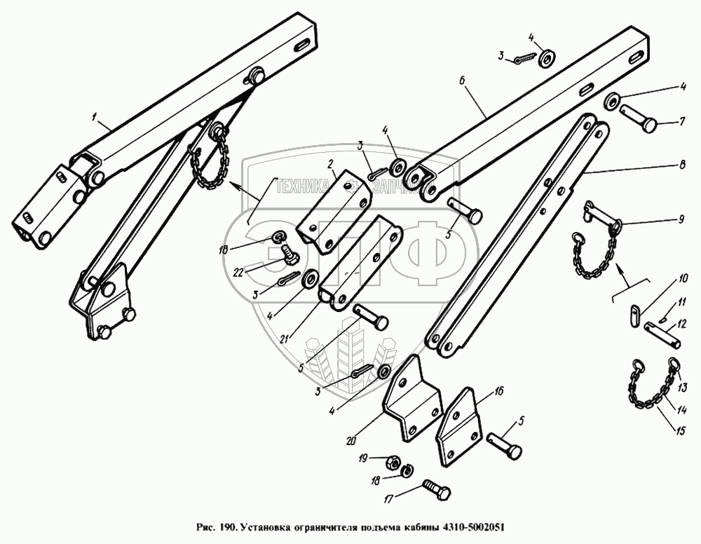 Каталог запасных частей к технике: Камский автозавод 4310. Установка ограничителя подъема кабины