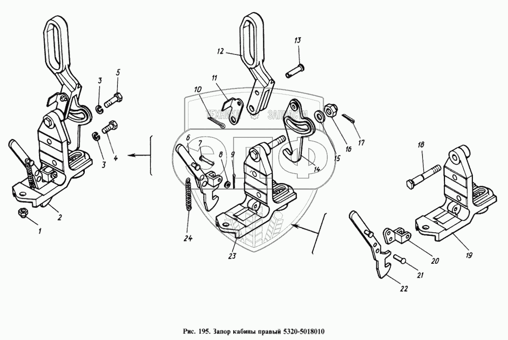 Каталог запасных частей к технике: Камский автозавод 4310. Запор кабины правый