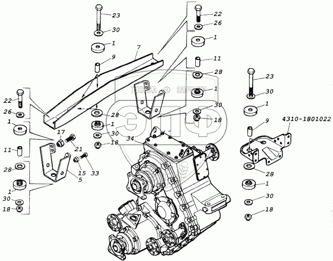 | 5 | 4310-1801012-10 | Кронштейн подвески раздаточной коробки | Нет на складе | |