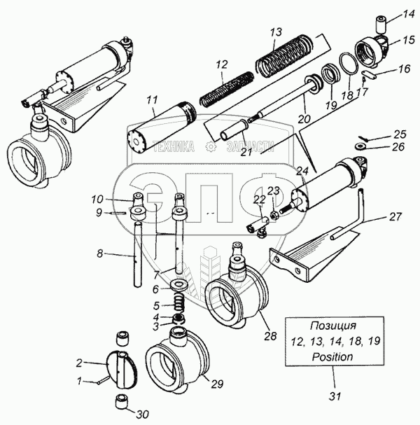 Каталог запасных частей к технике: Камский автозавод 4326. Цилиндр вспомогательного тормоза пневматический