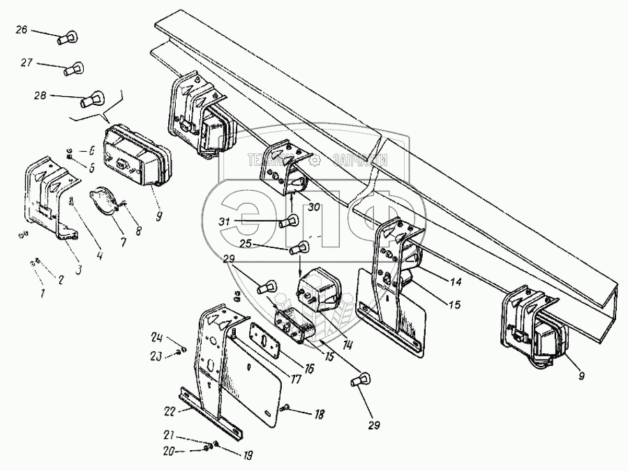 | 22 | 4310-3717028 | Кронштейн фонаря освещения номерного знака и фонаря заднего хода в сборе | Нет на складе | |