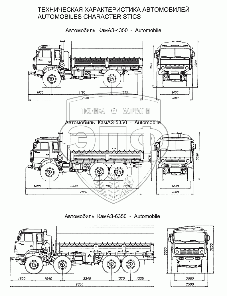 Каталог запасных частей к технике: Камский автозавод 4350 (4х4). Техническая характеристика автомобилей
